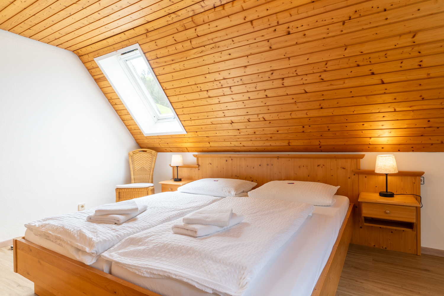 Eine gemütliche und sehr gut eingerichtete 64m² Ferienwohnung in der 2. Etage des Ferienhauses. Mit 2 Schlafzimmern und 2 kleinen Bädern ist diese Wohnung auch perfekt für 2 Paare geeignet. Wohnzimmer mit großzügiger Schlaf-Couch. Separate Küche mit Essplatz und angeschlossenem Balkon. Sehr gerne wird das Ferienhaus von 2 befreundeten Familien gebucht. Sie haben dann das ganze Haus für sich alleine!